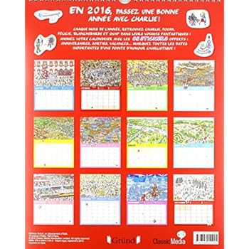 En 2016, passez une bonne année avec Charlie ! Passez votre année 2016 en compagnie de Charlie, et suivez-le à travers toutes ses aventures. Chaque mois, dans une grande scène extraite des albums, retrouvez Charlie, Pouah, Félicie, Blanchebarbe, Ouaf et une foule d'objets loufoques ! Et en cadeau, 60 stickers Charlie à coller sur son calendrier, pour marquer toutes les dates importantes d'une pointe d'humour charlistique !