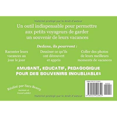 Compléter, s’amuser, réfléchir, créer des souvenirs... ce journal de vacances personnalisable accompagnera votre enfant tout au long de ses vacances de manière ludique et pédagogique. Vacances de 30 jours maximum. Pour des vacances plus courtes ou plus longues, consultez les autres Journaux de Vacances du Petit Voyageur.