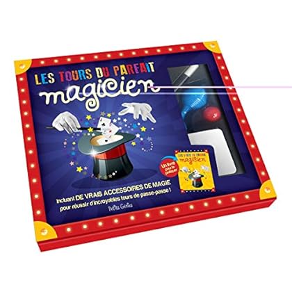 Devenir magicien, c'est facile! Ce coffret est parfait pour exécuter 15 tours de magie et impressionner famille et amis. Le livre présente les tours étape par étape, avec des conseils de pro. Le coffret contient: une baguette magique, des cordes, un dé, un paquet de cartes, un gobelet magique et une boîte magique. Une grande variété d'accessoires et un guide très complet permettent à l'enfant d'apprendre à réaliser 15 tours de magie impressionnants! Une thématique très populaire qui plaît autant aux filles qu'aux garçons. Un coffret robuste pour conserver les composantes, idéal pour le transport.