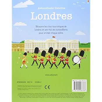 Merci Usborne pour ce beau livret d'autocollants à coller qui pourra ravir les petits (4 ans environ) comme les plus grands (jusqu'à 10 ans environ).Idéal pour préparer et pendant un voyage à londres avec des enfants.Plus de 250 autocollants très sympas à coller sur 9 pages aux thèmes suivants : la relève de la garde, la tamise, le métro, le london eye, la tour de londres, le zoo de londres, trafalgar square, piccadilly circus, ainsi qu'un plan de londres avec les principaux sites.A recommander.