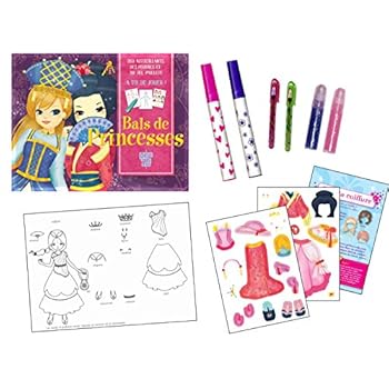 Les princesses savent se faire belles en toute occasion et surtout pour aller au bal ! Amuse-toi à choisir parmi tous les autocollants proposés leurs tenues et leurs accessoires. Puis colorie-les et décore-les avec tes gels pailletés et tes feutres tampons à motifs ! Tu as tout en main pour commencer !